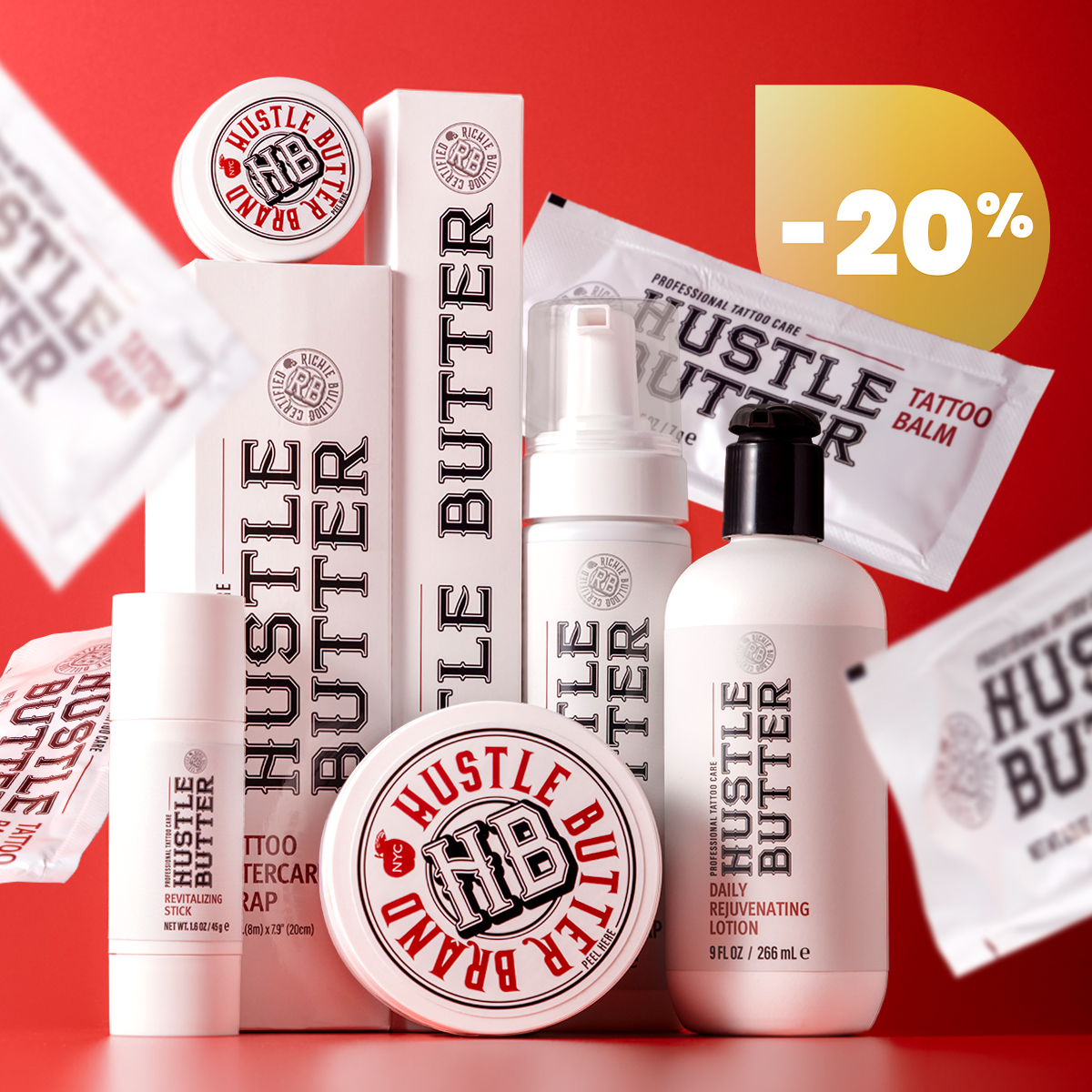 February savings are here! Get 20% off the full range of Hustle Butter products, the premium tattoo care brand trusted by artists!