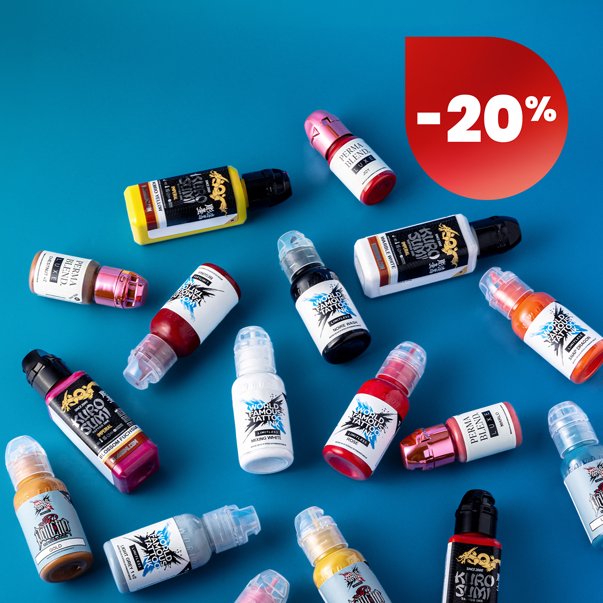 Enjoy 20% off World Famous Limitless & Kuro Sumi Imperial tattoo inks. Perfect for all tattoo styles, from fine line, realism, and traditional to bold neo-traditional work, these inks are a must-have addition to your set-up!
