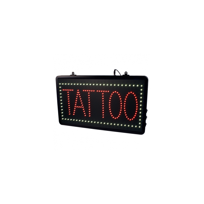 The tattoo LED sign can be hung up in your studio window to give your parlour that authentic touch! Comes complete with chain and plugs directly in to a mains socket with a lead approx. 1900mm long. The sign comes with four different settings: