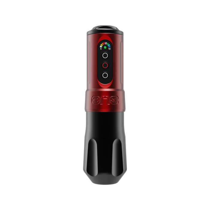 Manufactured from medical- and aerospace-grade 6061 T6 aluminium, this Yomico edition of the ONE features a black grip and matching scarlet-red belt and battery pack. The chunky grip has an ergonomic shape including larger grooves to prevent rolling and enhance comfort while working, and is compatible with all universal Cheyenne-type cartridges and modular FK grips.