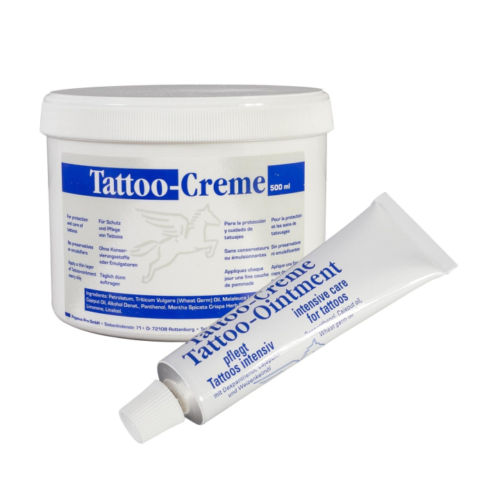 Pegasus Pro Tattoo-Creme is one of the most popular tattoo aftercare products in Europe. It is a specially formulated tattoo cream which helps to strengthen and quickly regenerate the surface layers of the skin.