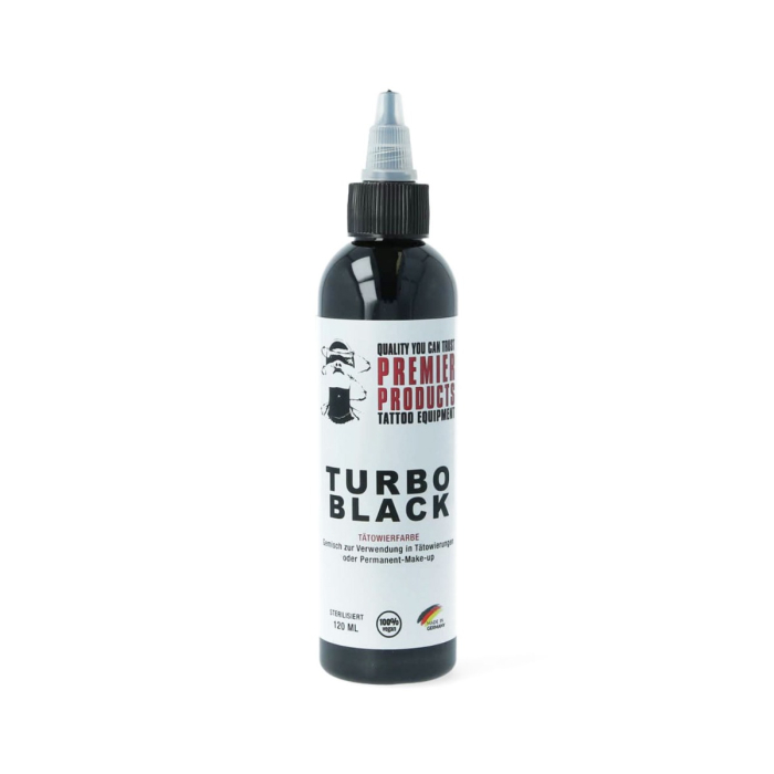 Turbo Black is the darkest black tattoo ink offered by Premier Products. Easy to use and will ensure healed work stays black and bold.